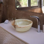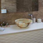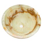 Questo moderno lavabo in onice è realizzato a mano dai nostri abili artigiani in una forma rotonda. Realizzato in onice verde chiaro naturale, questo lavabo traslucido offre uno stile unico a qualsiasi bagno loft, combinando la raffinatezza della pietra onice con un’estetica moderna e adattabile.