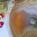 Onice Miele Nougat: questa straordinaria pietra è rinomata per la sua capacità di catturare e trasformare la luce. La sua calda tonalità arancione, infusa con tenui toni crema e bianco, si illumina in modo unico in diverse condizioni di luce, creando un senso di costante cambiamento. Da un delicato e traslucido bagliore in condizioni di scarsa illuminazione a una ricca luminosità ambrata quando la luce filtra, questo onice è un’opera d’arte naturale vivente in continua evoluzione.