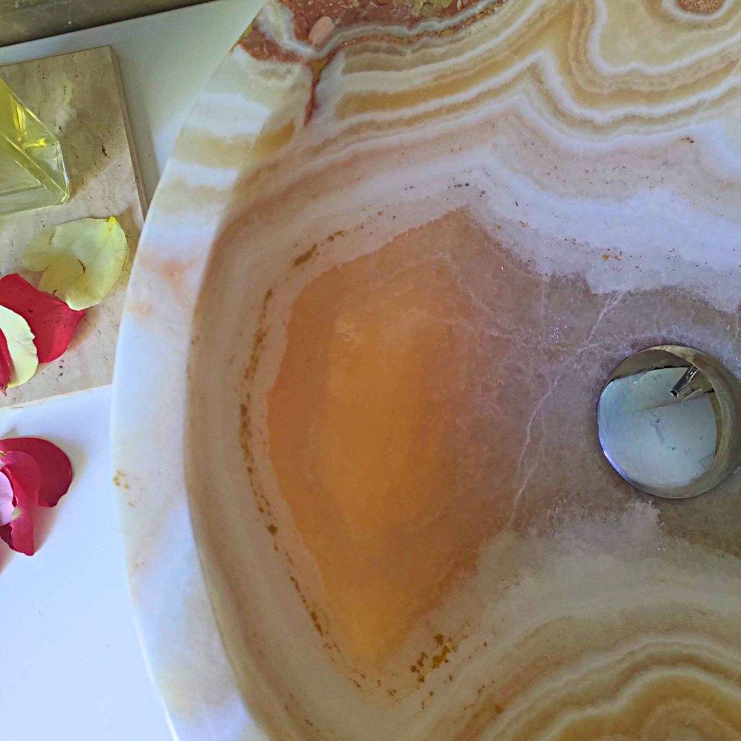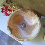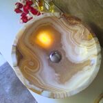 Un lavabo in onice Miel Nougat, meticolosamente intagliato a mano con maestria artigianale, è più di un semplice pezzo funzionale: è un simbolo di raffinatezza ed esclusività. Ogni pezzo è unico nel suo genere e riflette la ricchezza della natura e l’essenza mutevole della luce.