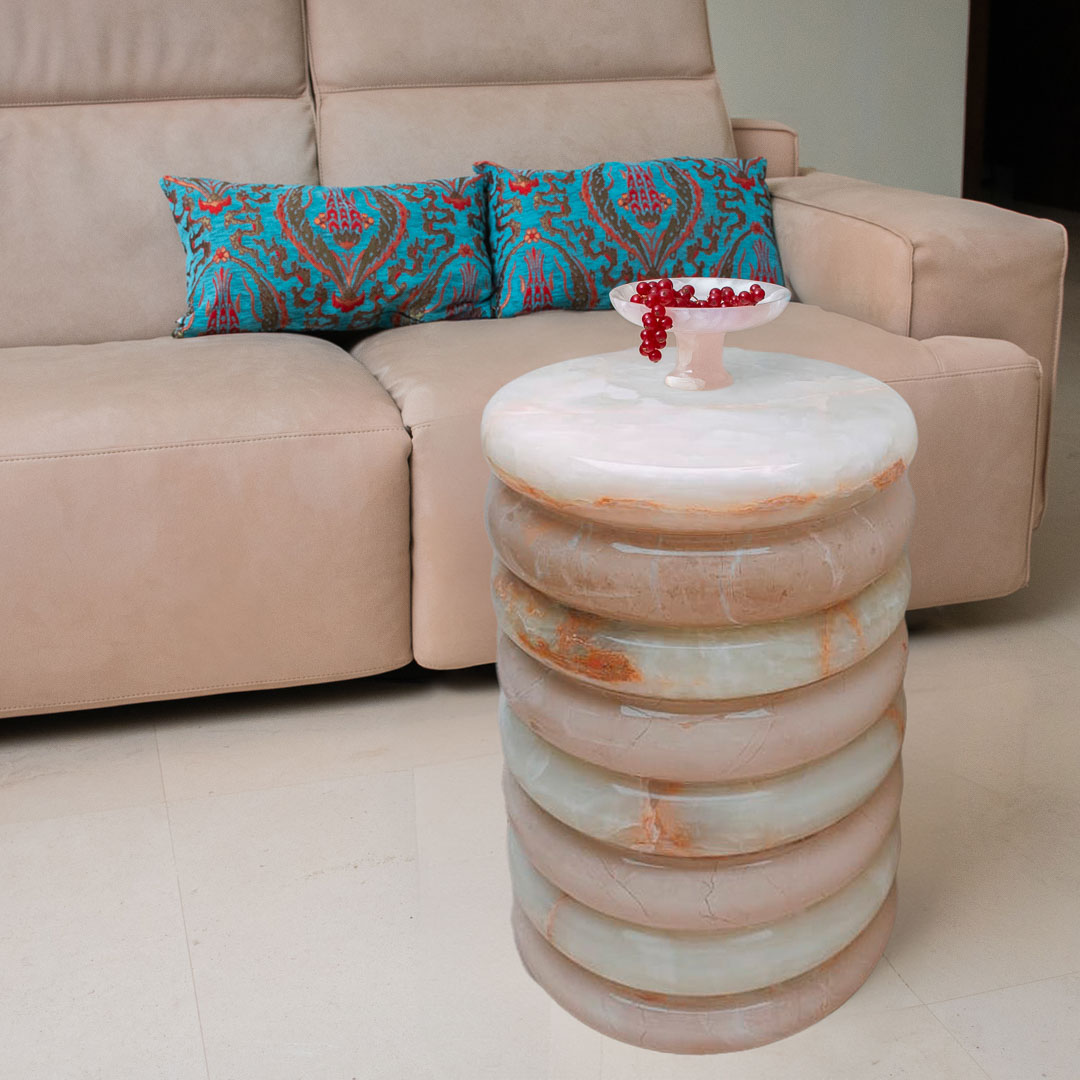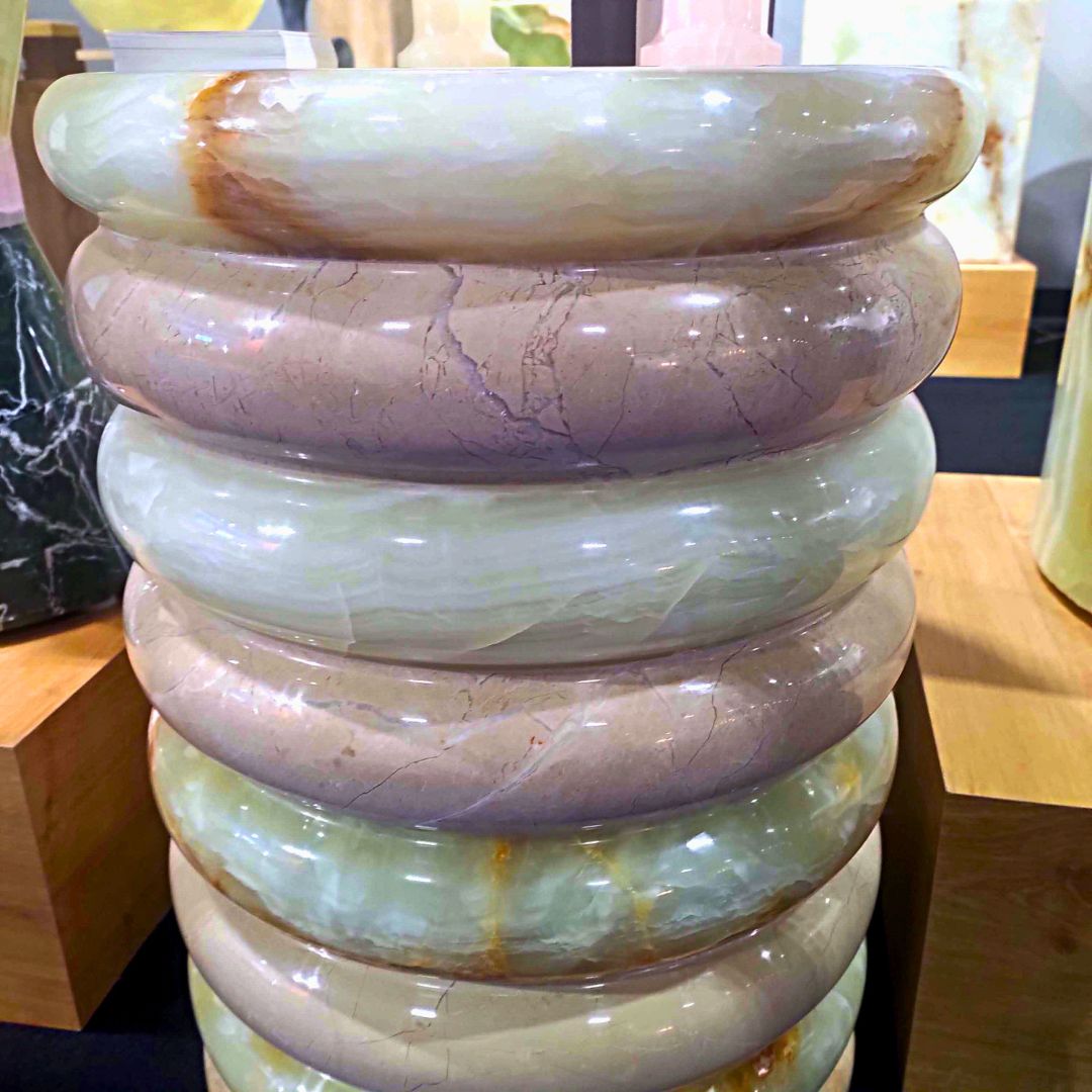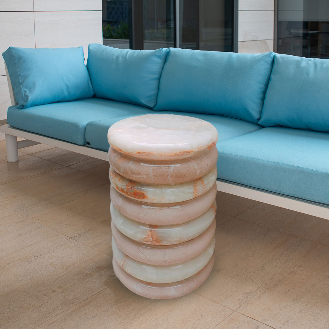 Questo piccolo tavolino da cocktail in marmo onice, con il suo design creativo e fresco, è un capolavoro unico e assolutamente lussuoso. Questo magnifico pezzo è una splendida fusione di prezioso onice raro e marmo eccezionale, che cattura l’essenza della natura in una rappresentazione artistica. Il caratteristico design arrotondato di questo tavolino, che ricorda una ciambella, combina armoniosamente onice autentico e marmo in linee fluide ed eleganti. Questo design innovativo e unico non solo offre un’estetica contemporanea, ma emana anche un’eleganza classica che valorizza qualsiasi spazio interno. Ogni curva e linea di questo plinto in onice è stata meticolosamente realizzata per creare un pezzo che sia allo stesso tempo funzionale e visivamente accattivante. La fusione di questi due materiali nobili ne esalta la bellezza naturale, conferendogli una dimensione di raffinatezza e raffinatezza difficile da eguagliare. La sua forma arrotondata e l’esecuzione impeccabile lo rendono un pezzo di design esclusivo che non può essere dimenticato. È un tavolo che colpisce tutti, una dichiarazione di stile e buon gusto che non passerà inosservata. Che sia posizionato in un elegante soggiorno o in un angolo accogliente, questo tavolino artistico in onice diventa il centro dell’attenzione, esaltando l’ambiente con la sua presenza maestosa e la sua classe senza tempo. Ideale per chi cerca un arredamento unico ed esclusivo.