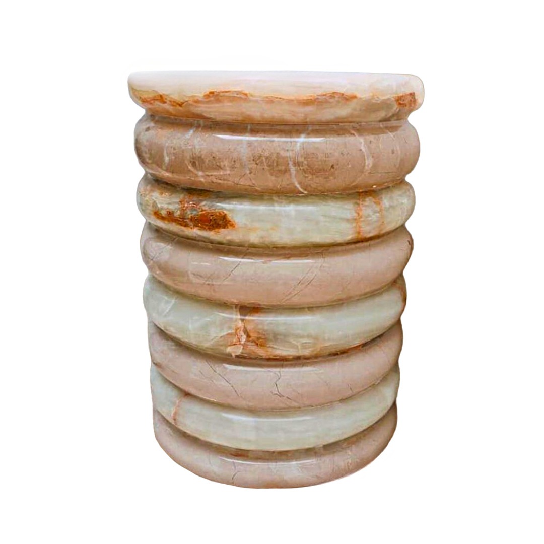 Il nostro piccolo tavolino da cocktail in marmo onice è un vero gioiello di design artigianale, un pezzo innovativo ed eccezionale che si distingue per forma ed esecuzione. Con un design arrotondato che evoca la forma di una ciambella, questo tavolo artistico è una sublime fusione di onice raro e marmo eccezionale, catturando l’essenza della natura in un’espressione artistica senza pari. Il design distintivo e arrotondato di questo tavolino con piedistallo impreziosisce lo spazio interno con la sua eleganza senza tempo e la sua classe ineguagliabile. Le linee morbide e curve del tavolo creano un senso di fluidità e movimento, mentre la combinazione di materiali offre un contrasto visivo affascinante e sofisticato.